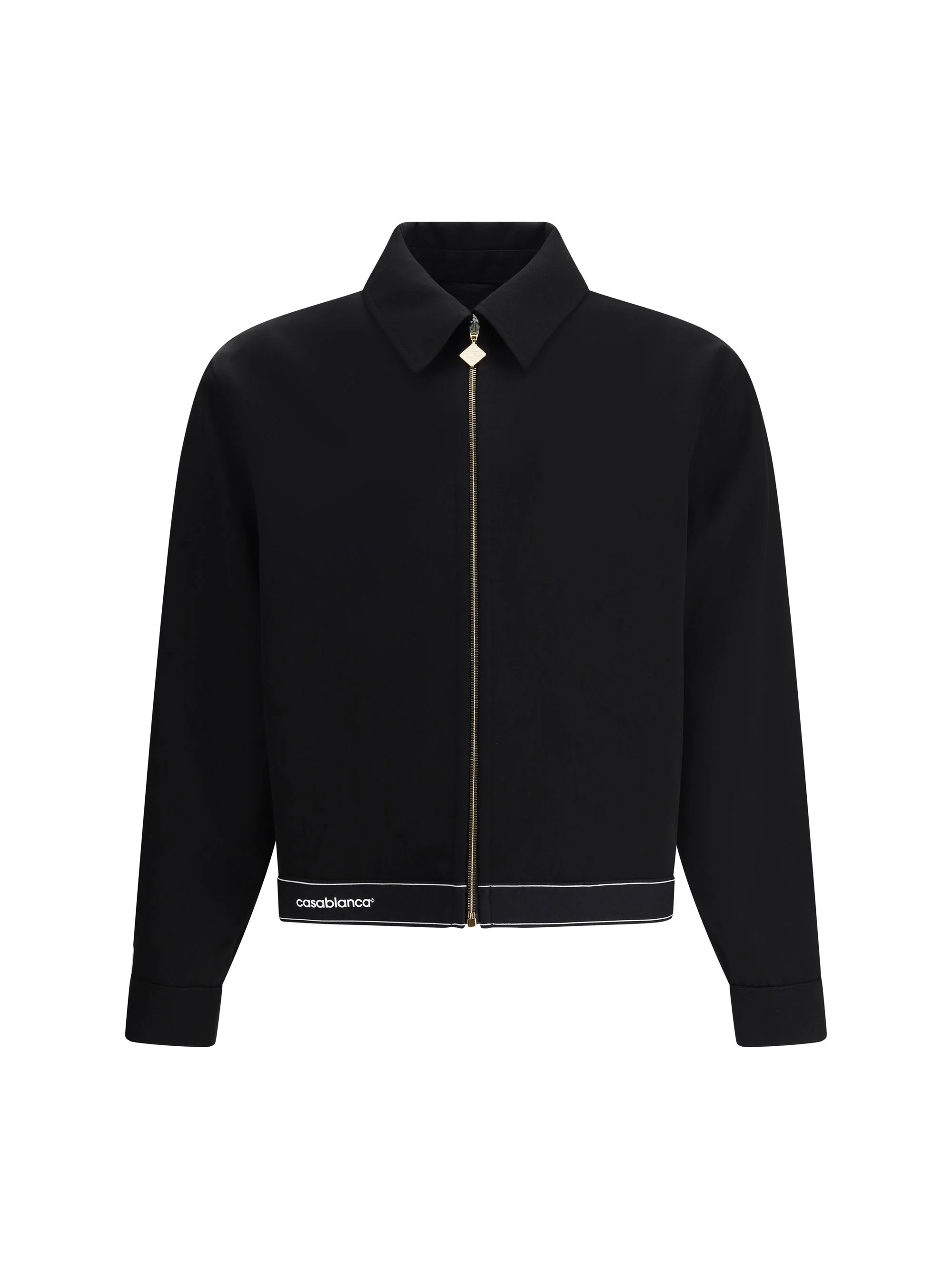 Casablanca's wool Sports Jacket features a sleek, modern design perfect for a casual yet polished look. It features a pointed collar and a front closure with a logoed zipper, adding a distinctive and contemporary touch. The dropped shoulders and relaxed fit ensure comfort and a loose fit, while the long sleeves are finished with buttoned cuffs for a classic detail. The embroidered logo on the front hem underscores the brand's identity, while white piping on the bottom adds elegant contrast. The tone-on-tone viscose lining completes the jacket, ensuring a soft, quality feel. Size Type: IT SKU: MPF25JK42501BLACK Our Products Are 100% Genuine. In All Cases We Stand By The Authenticity Of Every Product Sold On Our Site. All sales are final and we only accept returns for quality issue. Buyer is responsible for any import tax/duty if applicable.