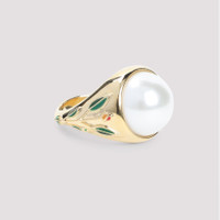 Casablanca Pearl Signet Gold Brass Ring. Golden-finish brass, adorned with glass pearl on the top, enameled signature laurel on the sides. Brass | 100%BRASS 100%PEARL Size Type: INT SKU: APF25JW08801Metallic Our Products Are 100% Genuine. In All Cases We Stand By The Authenticity Of Every Product Sold On Our Site. All sales are final and we only accept returns for quality issue. Buyer is responsible for any import tax/duty if applicable.