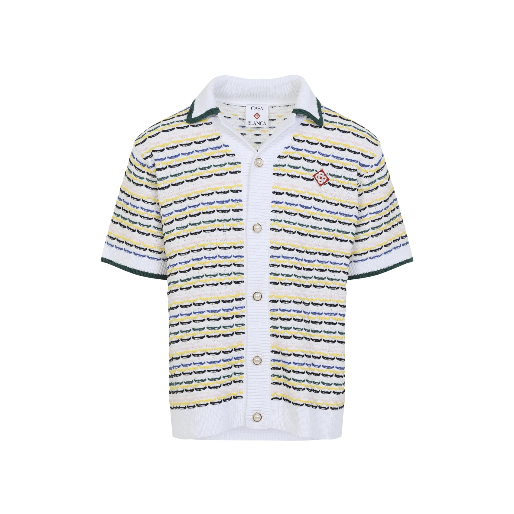 Casablanca Tuck Stitch Multicolor Cotton Shirt. Crocheted white cotton shirt, it features yellow and green embroidery all over, a pointed collar, front button fastening, logo patch on the chest, short sleeves, and a straight hem. Cotton | 100%COTTON Size Type: INT SKU: MSP26KW120901Multicolour Our Products Are 100% Genuine. In All Cases We Stand By The Authenticity Of Every Product Sold On Our Site. All sales are final and we only accept returns for quality issue. Buyer is responsible for any import tax/duty if applicable.