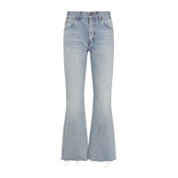 Celine Flare Dylan Light Blue Cotton Jeans. Crafted from washed light blue cotton denim, used effect, mid-rise, belt loops, front button and fly-zip fastening, leather patch at the back waistband, flared leg, raw-cut edges. Cotton | 100%COTTON Size Type: CM SKU: 2N423789DWhite Our Products Are 100% Genuine. In All Cases We Stand By The Authenticity Of Every Product Sold On Our Site. All sales are final and we only accept returns for quality issue. Buyer is responsible for any import tax/duty if applicable.
