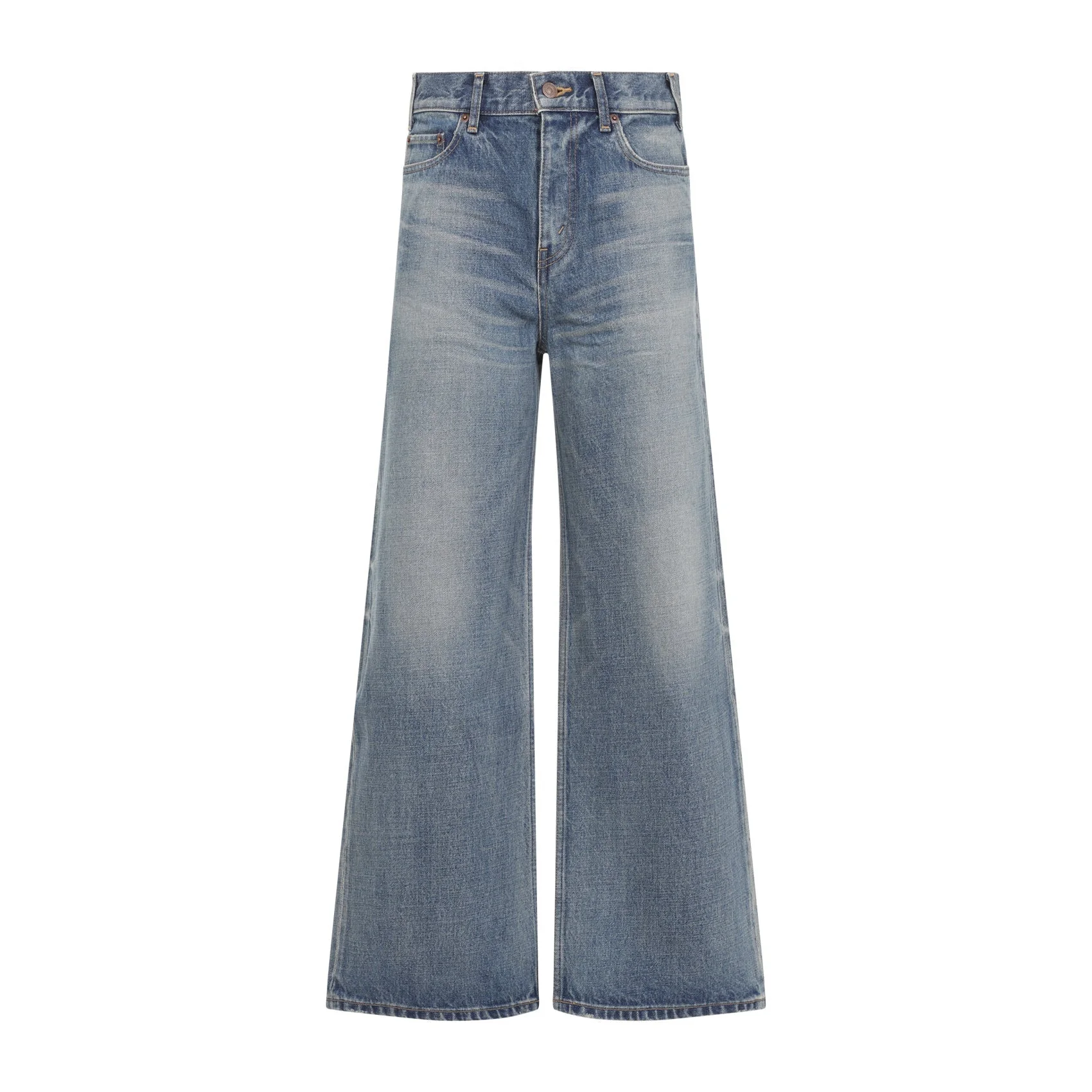 Celine Jolene Blue Cotton Jeans. Crafted from washed blue cotton denim, mid-waist, belt loops, 5-pocket construction, front Triomphe button and fly-zip fastening, leather label on the back waist, flared leg, regular fit. Cotton | 100%COTTON Size Type: CM SKU: RP055930FBlue Our Products Are 100% Genuine. In All Cases We Stand By The Authenticity Of Every Product Sold On Our Site. All sales are final and we only accept returns for quality issue. Buyer is responsible for any import tax/duty if applicable.