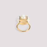 Les Perles Celine Ring in Strass, Resin Pearls and Brass with Gold Finish