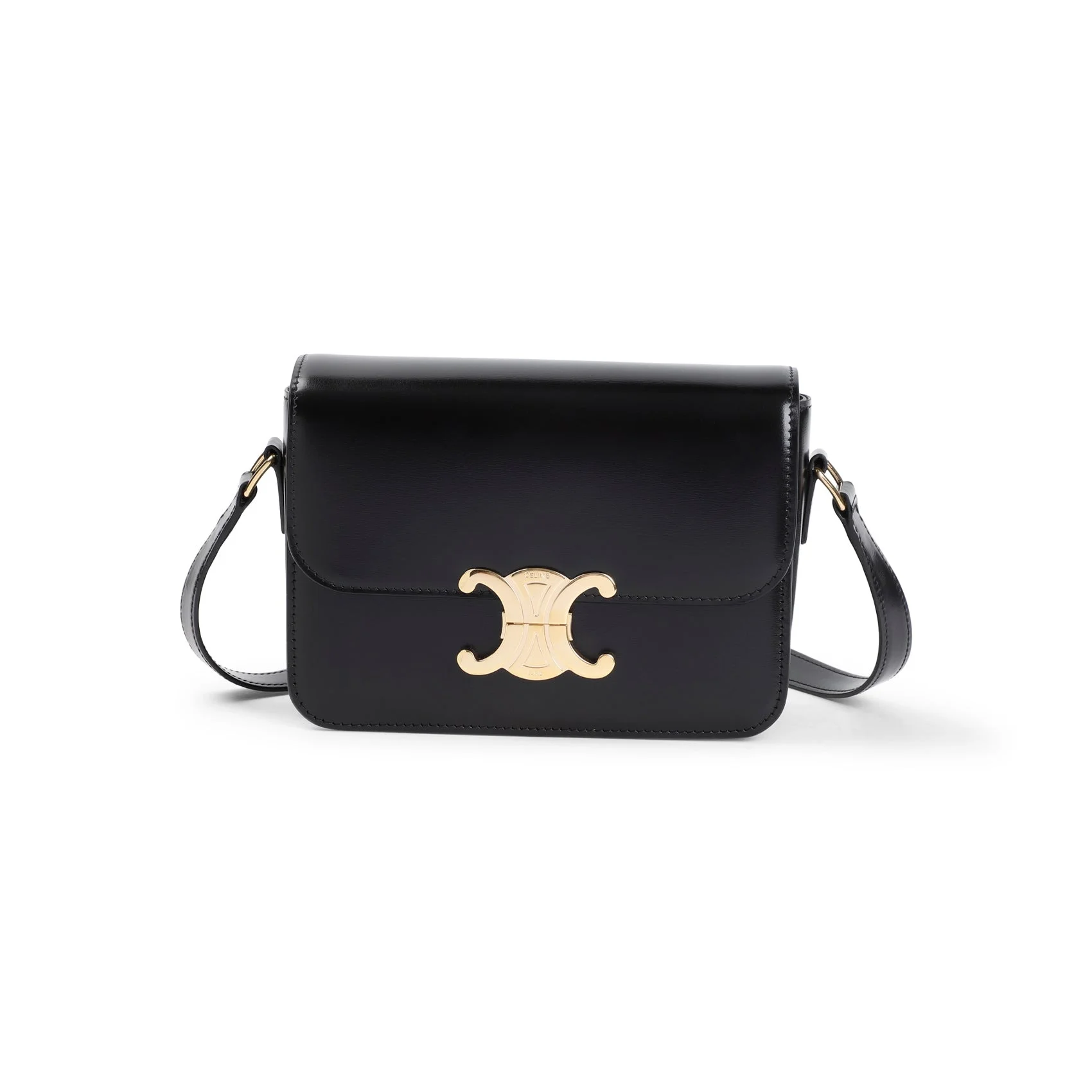 Celine Teen Triomphe Black Calf Leather Shoulder Bag. Crafted from black calf leather, golden-toned hardware, logo-shaped buckle closure, adjustable shoulder strap, three inner compartments, one internal zip pocket, leather lining. Leather | 100%CALFSKIN W:18,5cm H:13,5cm D:7cm Size Type: One Size SKU: 188423BF4Black Our Products Are 100% Genuine. In All Cases We Stand By The Authenticity Of Every Product Sold On Our Site. All sales are final and we only accept returns for quality issue. Buyer is responsible for any import tax/duty if applicable.