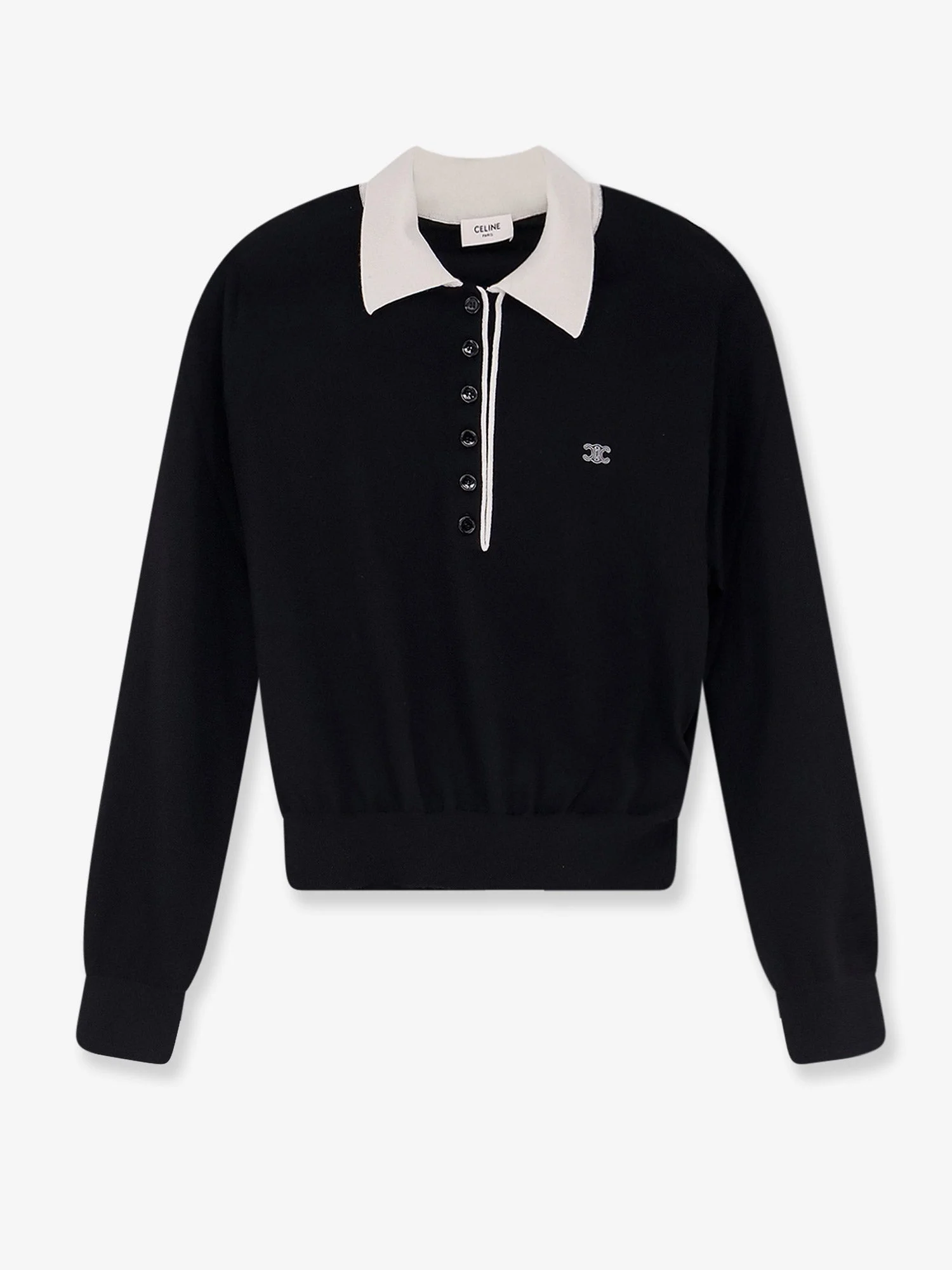 Celine Women Cashmere And Silk Polo With Front Logo Embroidery