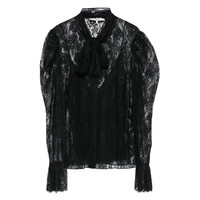black lace detail high neck long sleeves semi-sheer construction MADE IN:MadagascarMATERIAL:Silk: 32.0%, Polyamide: 100.0%, Acetate: 68.0%, Mother Of Pearl: 100.0%COLOR:BLACK SKU: 25AHT57328001 Our Products Are 100% Genuine. In All Cases We Stand By The Authenticity Of Every Product Sold On Our Site. All sales are final and we only accept returns for quality issue. Buyer is responsible for any import tax/duty if applicable.