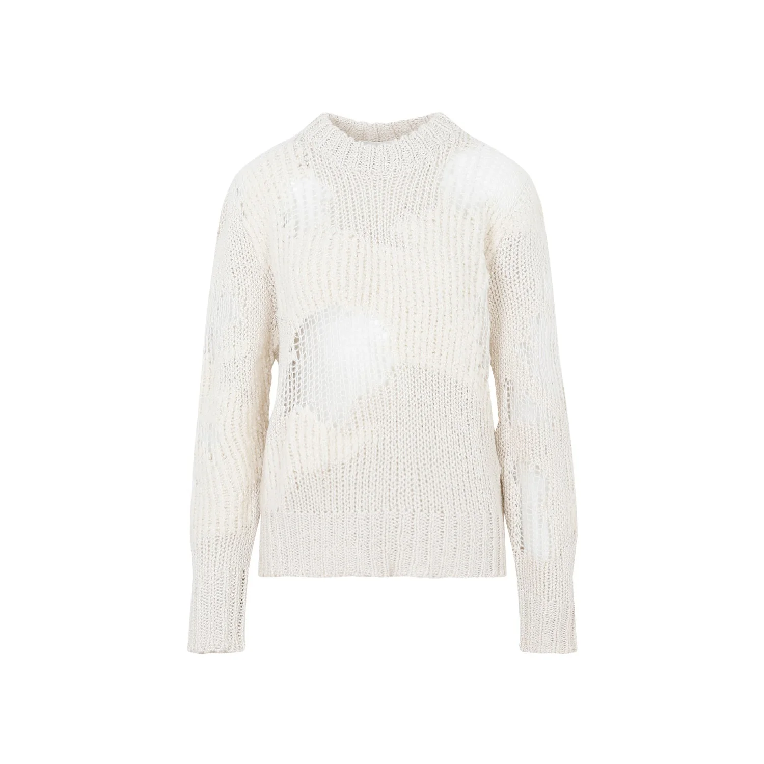 Chloe White Sweater. Crafted in a milk white wool, cashmere, silk, and alpaca blend. Ribbed crewneck, long sleeves, ribbed hem and cuffs, sheer patches for a distressed effect, straight hem. Wool | 56%WOOL 34%VASHMERE 7%SILK 7%ALPACA SKU: CHC23WMP08540Nude&Neutrals Our Products Are 100% Genuine. In All Cases We Stand By The Authenticity Of Every Product Sold On Our Site. All sales are final and we only accept returns for quality issue. Buyer is responsible for any import tax/duty if applicable.