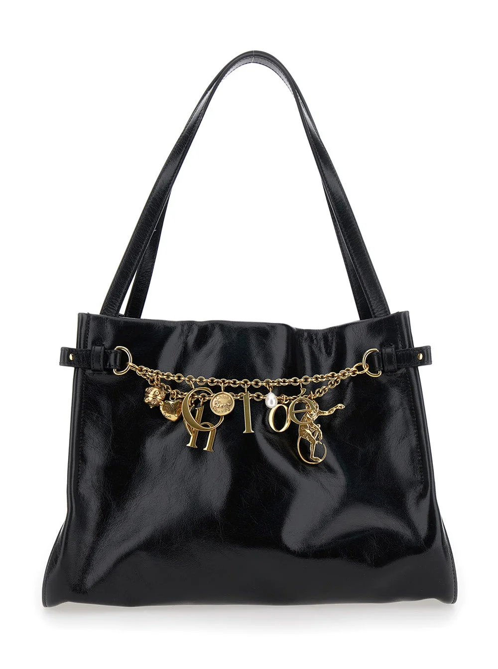 Chloé Women Black Shoulder Bag With Metallic Charms And Chain Details In Leather Woman