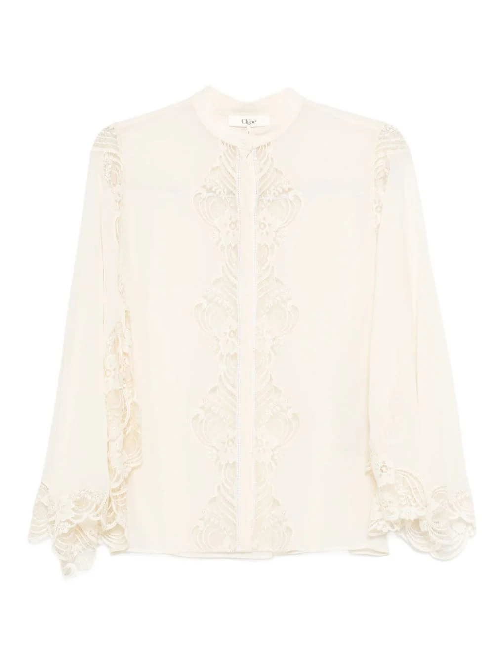 DESCRIPTION ::White CHLOE' silk lace blouse with a high collar and mother-of-pearl button closure.MADE IN::SlovakiaCOLOR::WHITE SKU: CH25AHT33117114WHITE Our Products Are 100% Genuine. In All Cases We Stand By The Authenticity Of Every Product Sold On Our Site. All sales are final and we only accept returns for quality issue. Buyer is responsible for any import tax/duty if applicable.