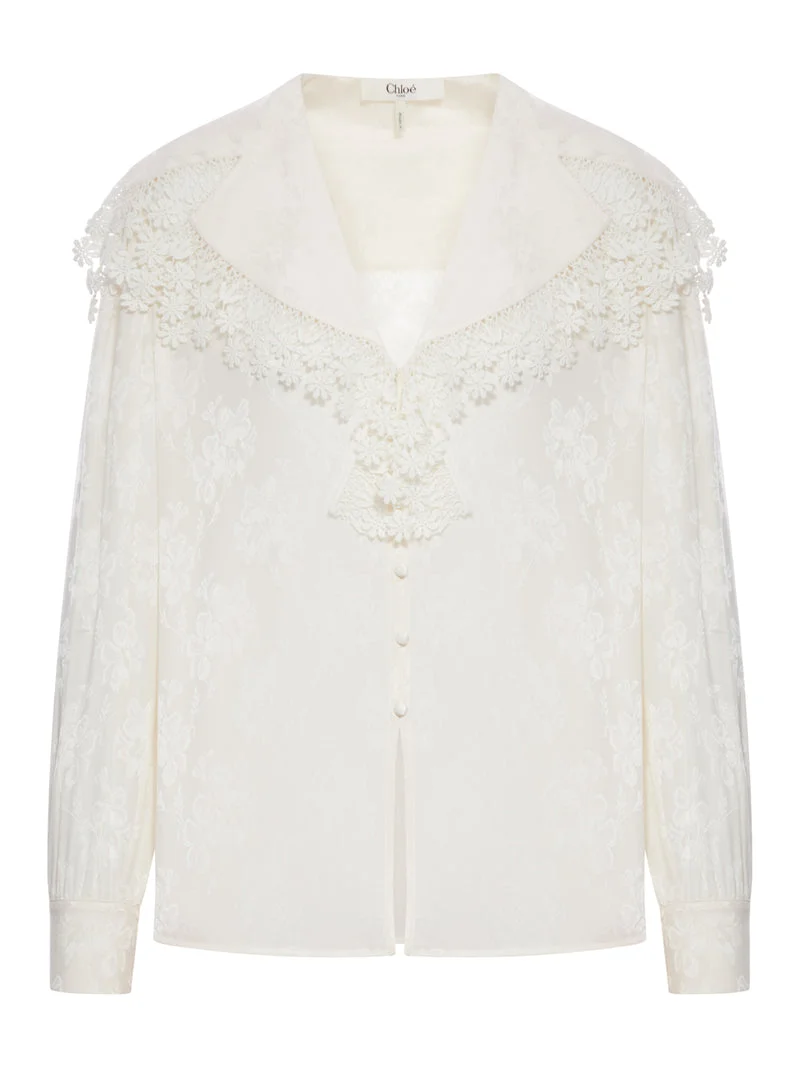 MAXI-COLLAR BLOUSE IN SILK JACQUARD & LACE