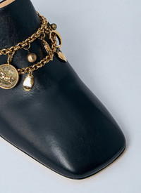 Leather heeled mules in smooth-grain finish with gold-tone charms. Pointed toe Open rear Gold-tone charms at front Block heel 100% Leather CHC25A11ERI001 SKU: CHC25A11ERI001 Our Products Are 100% Genuine. In All Cases We Stand By The Authenticity Of Every Product Sold On Our Site. All sales are final and we only accept returns for quality issue. Buyer is responsible for any import tax/duty if applicable.