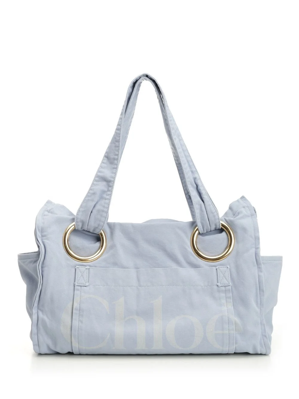 Chloe Plage cotton tote bag with oversized eyelets in Gold tones and Chloe Paris logo print, 2 internal flat pockets, 2 external flat pockets and a flat pocket on the front W.44 X H.35 X D.23 cm MAIN MATERIAL: 100% COTTON/MAIN LINING: 100% COTTON/INSIDE TRIM: 100% LEATHER DOMESTIC CALF GENUINE BOS TAURUS Ireland FARMED Made in: TR SKU: CH25AS545P104E0 Our Products Are 100% Genuine. In All Cases We Stand By The Authenticity Of Every Product Sold On Our Site. All sales are final and we only accept returns for quality issue. Buyer is responsible for any import tax/duty if applicable.