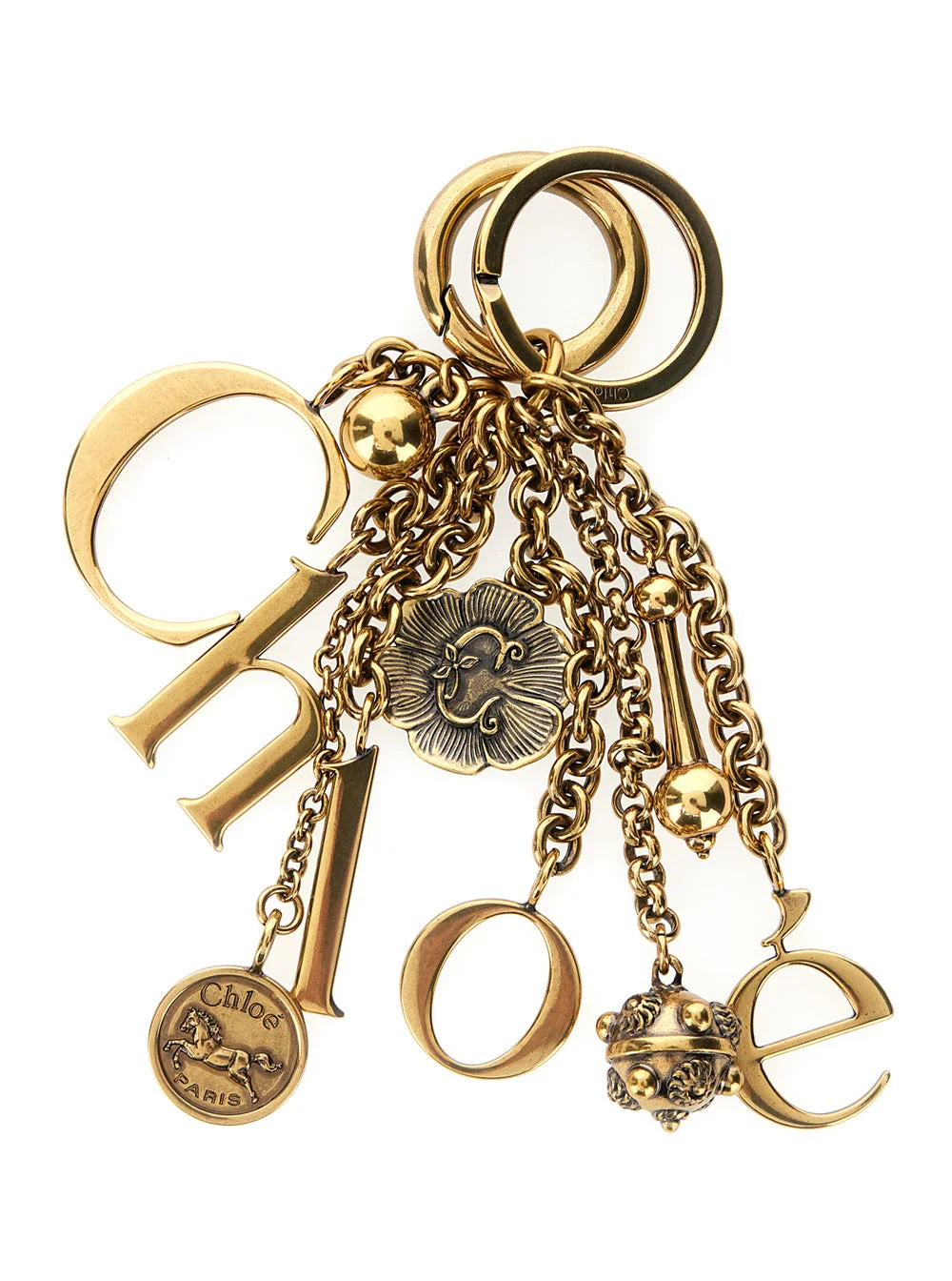 CHLOÉ SYMBOLS LOGO KEY RING BAG CHARM IN BRASS