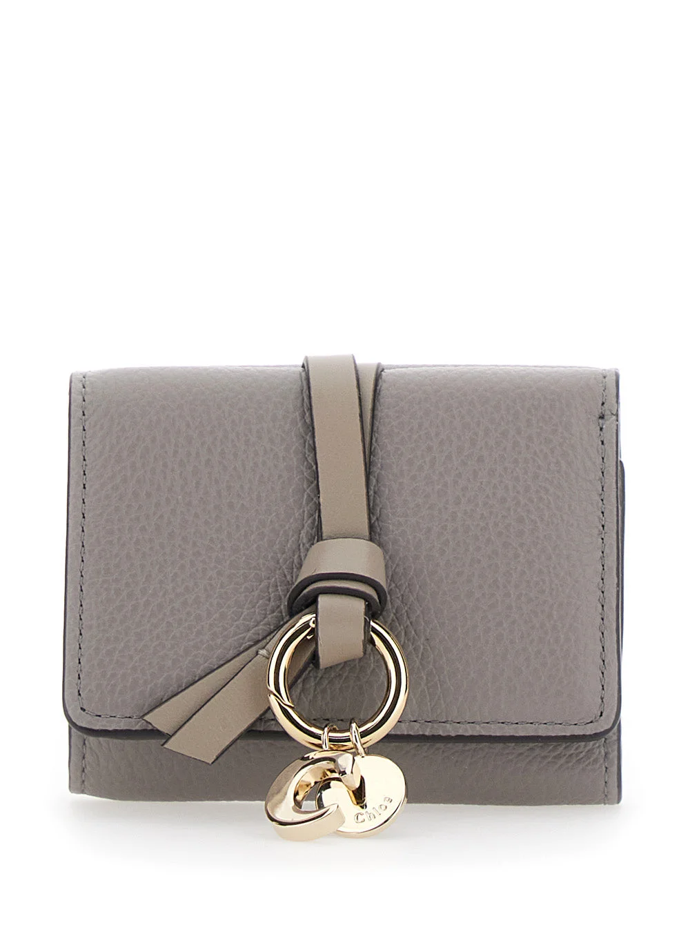 Chloé Women Grey Mini Tri-Fold Wallet With Charm On The Front And Magnetic Closure In Leather Woman