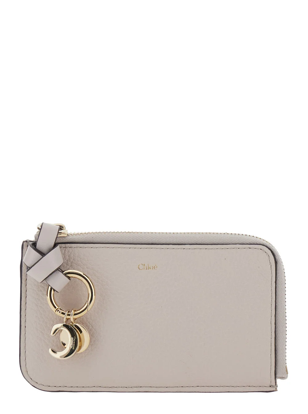 Chloé Women Grey Wallet With Logo Charm On The Front And Top Zip Closure In Grained Leather Woman