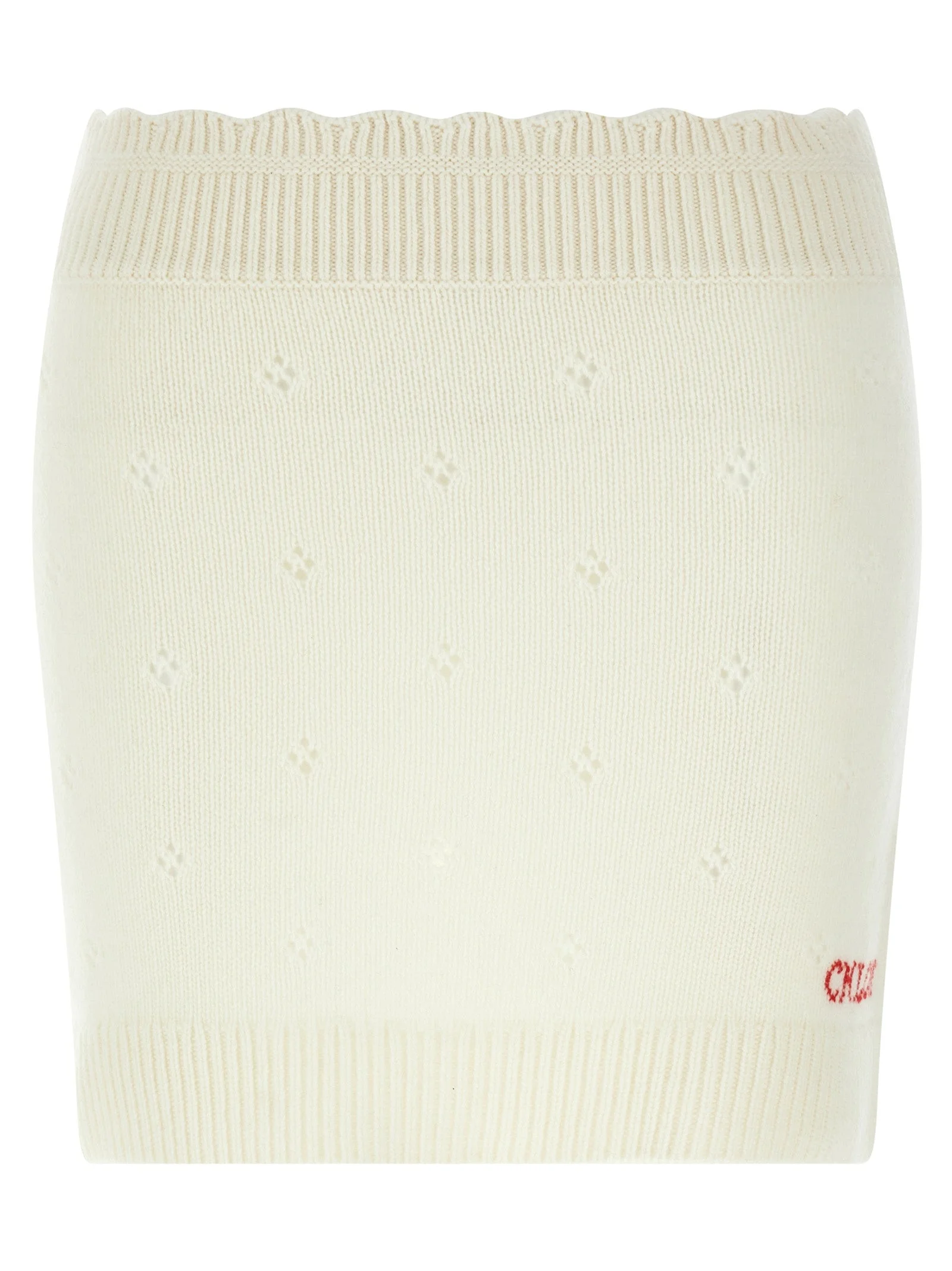 Mini skirt in thick knit wool and cashmere with openwork pattern and front jacquard logo, wavy elastic waistband. Slim fit 71% wool 29% cachemire SKU: CH25WMJ06590107 Our Products Are 100% Genuine. In All Cases We Stand By The Authenticity Of Every Product Sold On Our Site. All sales are final and we only accept returns for quality issue. Buyer is responsible for any import tax/duty if applicable.