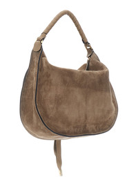 'marcie Medium' Beige Shoulder Bag With Logo Lettering On The Front In Suede Woman