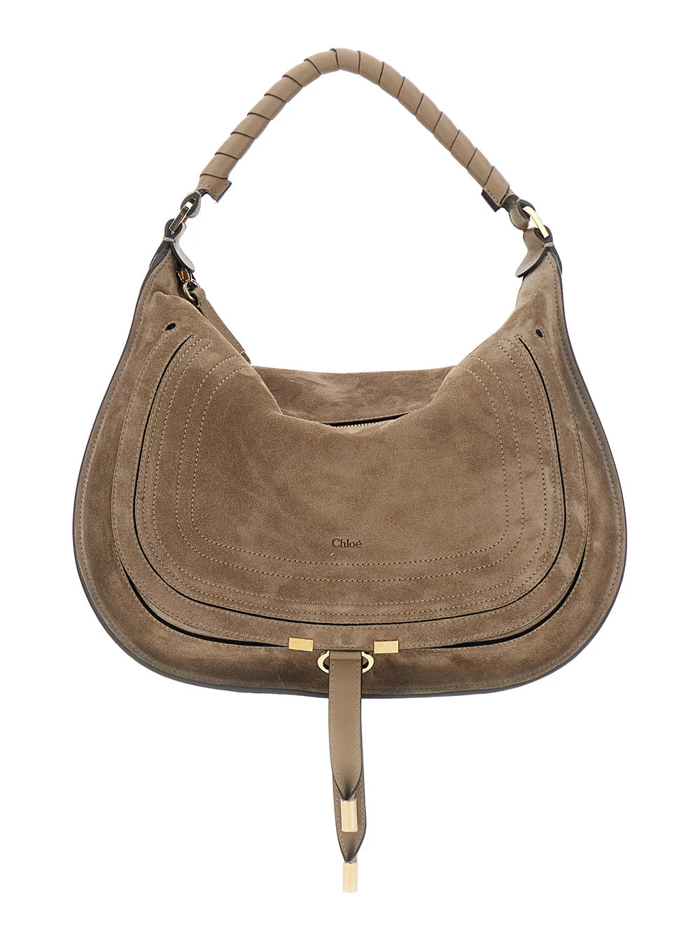 Chloé Women 'Marcie Medium' Beige Shoulder Bag With Logo Lettering On The Front In Suede Woman