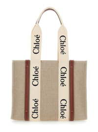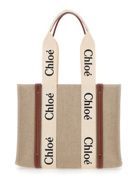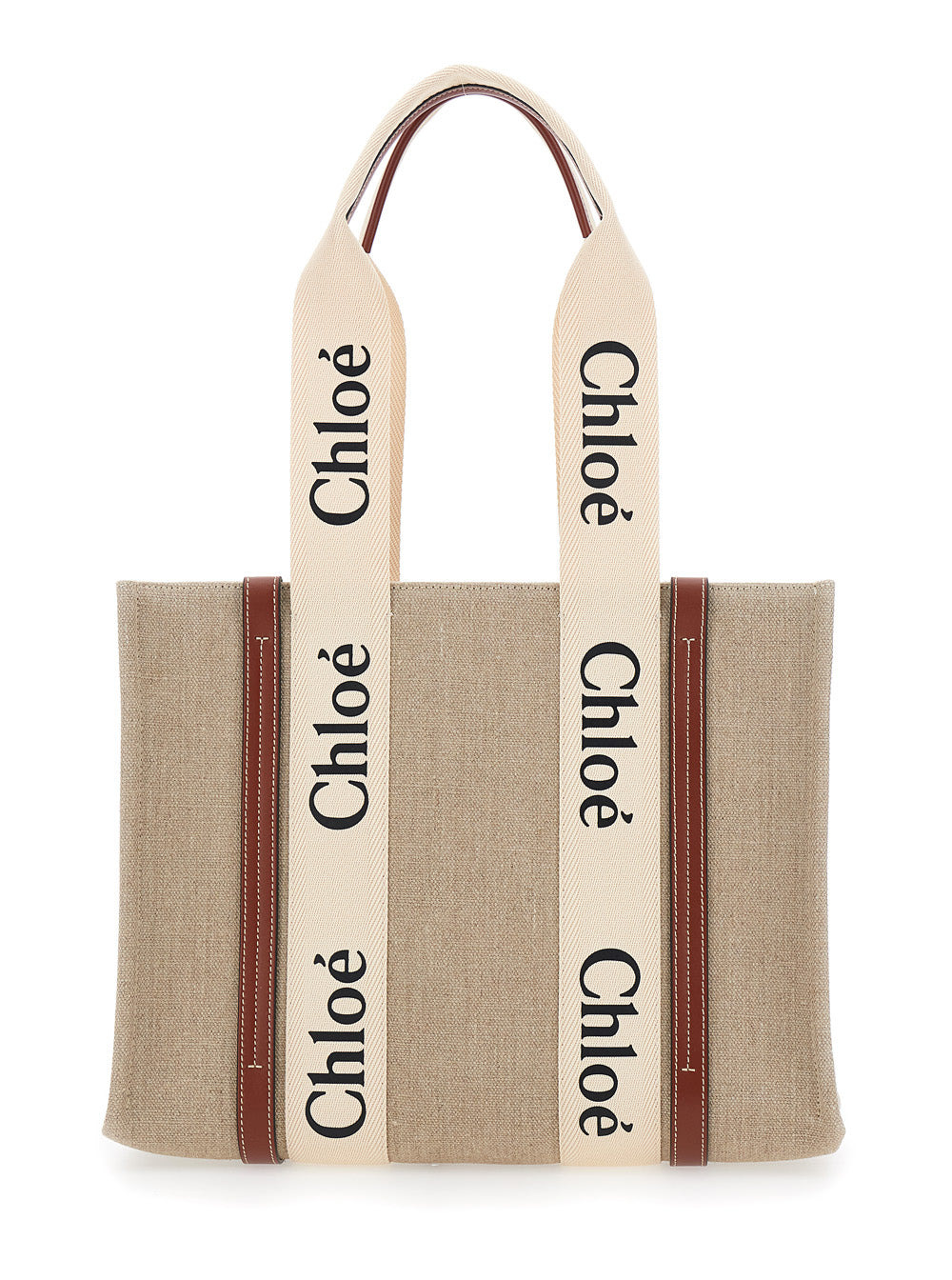 Chloé Women 'Medium Woody' Beige Handbag With Logo Lettering On The Front In Linen Woman
