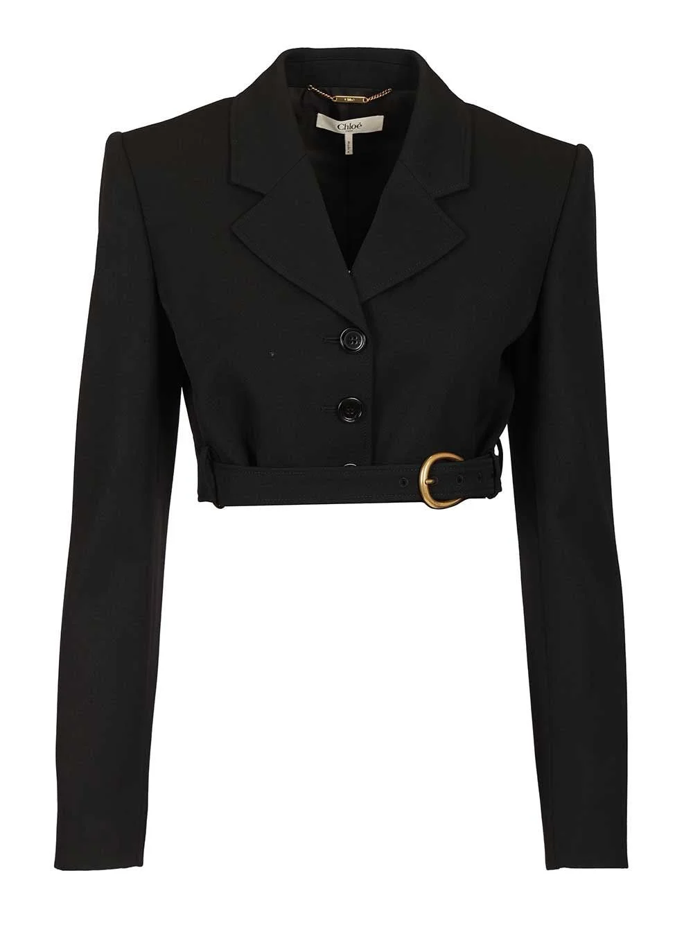 Short "Spencer" jacket in grain de poudre wool by Chloe, with single-breasted fastening with engraved horn buttons and tone-on-tone belt with gold buckle. OUTER SHELL: 100% WOOL DOMESTIC SHEEP VIRGIN WOOL OVIS ARIES ARIES New Zealand FARMED/MAIN LINING: 100% SILK/BUTTON: 100% HORN DOMESTIC ASIAN WATER BUFFALO BUBALUS BUBALIS India FARMED Made in: IT SKU: CH26SVE71067001 Our Products Are 100% Genuine. In All Cases We Stand By The Authenticity Of Every Product Sold On Our Site. All sales are final and we only accept returns for quality issue. Buyer is responsible for any import tax/duty if applicable.
