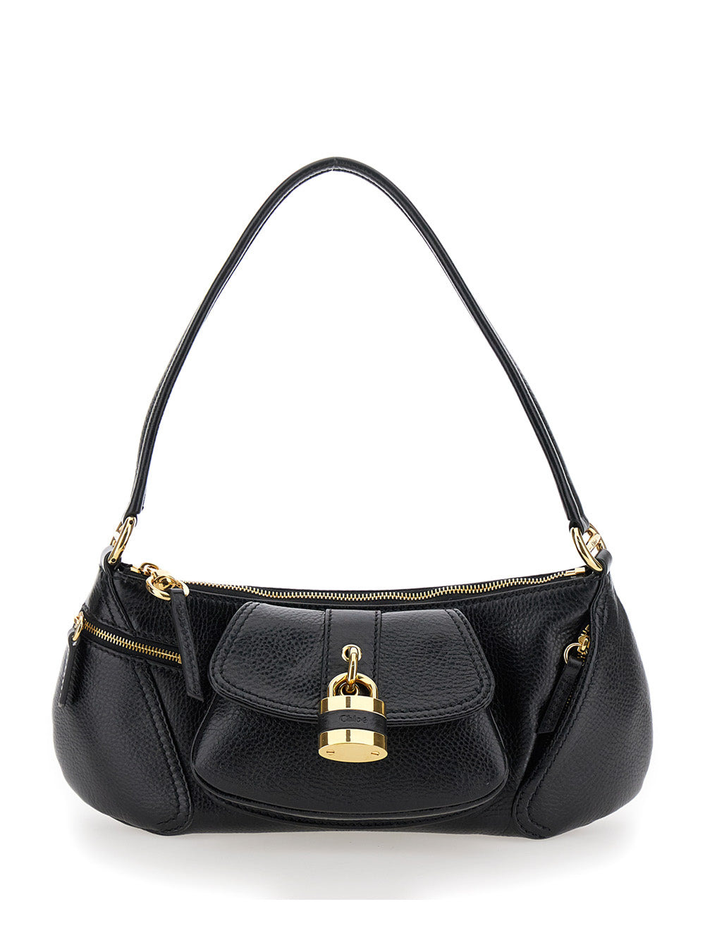 Chloé Women 'The 99' Black Shoulder Bag With Padlock In Hammered Leather Woman