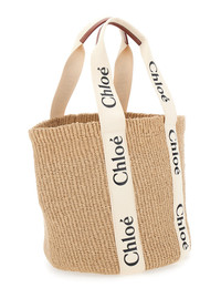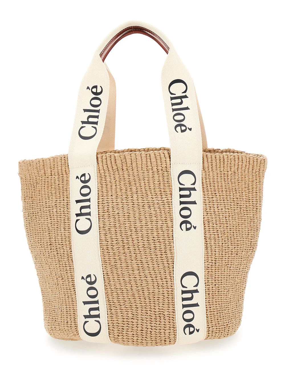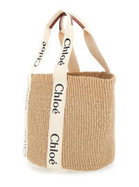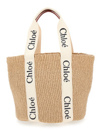Chloé Women 'Woody' Beige Shoper With With Logoed Shoulder Strap In In Woven Natural Fibers Woman