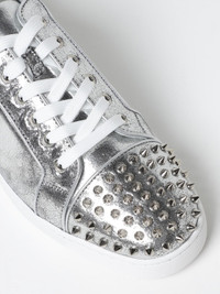 Louis Junior Spikes Metallic Cracked-Leather Sneakers Silver