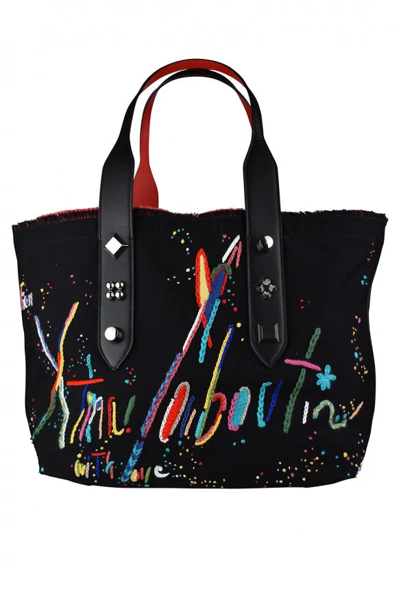 Christian Louboutin Frangibus medium tote bag in black fabric. Two black leather handles adorned with 3 silver studs. Fringed top edge. Multicolored paint stain effect on front. Embroidered writing: “From Christian Louboutin with love”. Small internal leather pocket. Dimensions: 27 cm x 44 cm x 18 cm. Size Type: INT SKU: 1225057T246MedNOIRMULTI Our Products Are 100% Genuine. In All Cases We Stand By The Authenticity Of Every Product Sold On Our Site. All sales are final and we only accept returns for quality issue. Buyer is responsible for any import tax/duty if applicable.