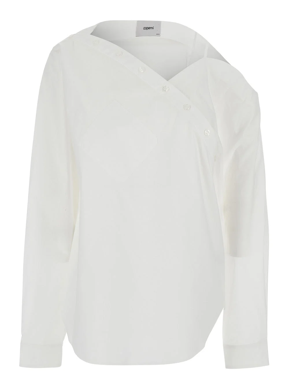 Coperni Women 'Heart' White Shirt With Asymmetric Buttons And Chest Pocket In Cotton Woman