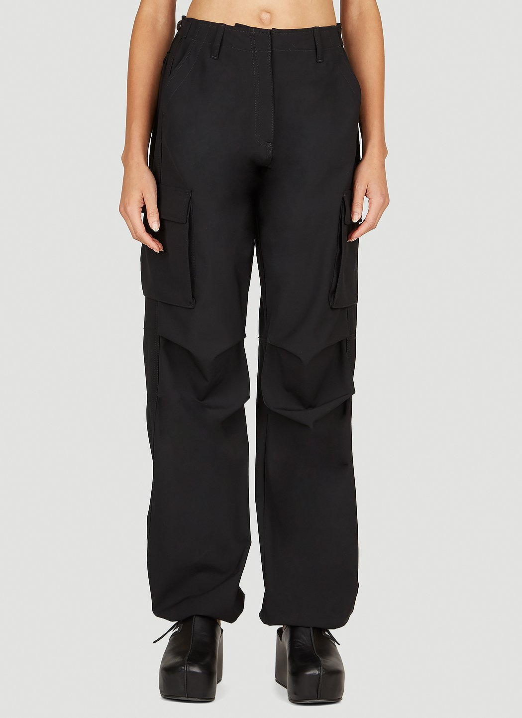 Tailored cargo pants with multiple pockets in twill. High rise Top-hook-and-eye and zip-fly fastening Belt loops Side slip pockets Side logo patch Elasticated hems 52% Polyester, 43% Wool, 5% Elastane. Dry clean COPP40106 BLACK SKU: COPP40106BLACK Our Products Are 100% Genuine. In All Cases We Stand By The Authenticity Of Every Product Sold On Our Site. All sales are final and we only accept returns for quality issue. Buyer is responsible for any import tax/duty if applicable.