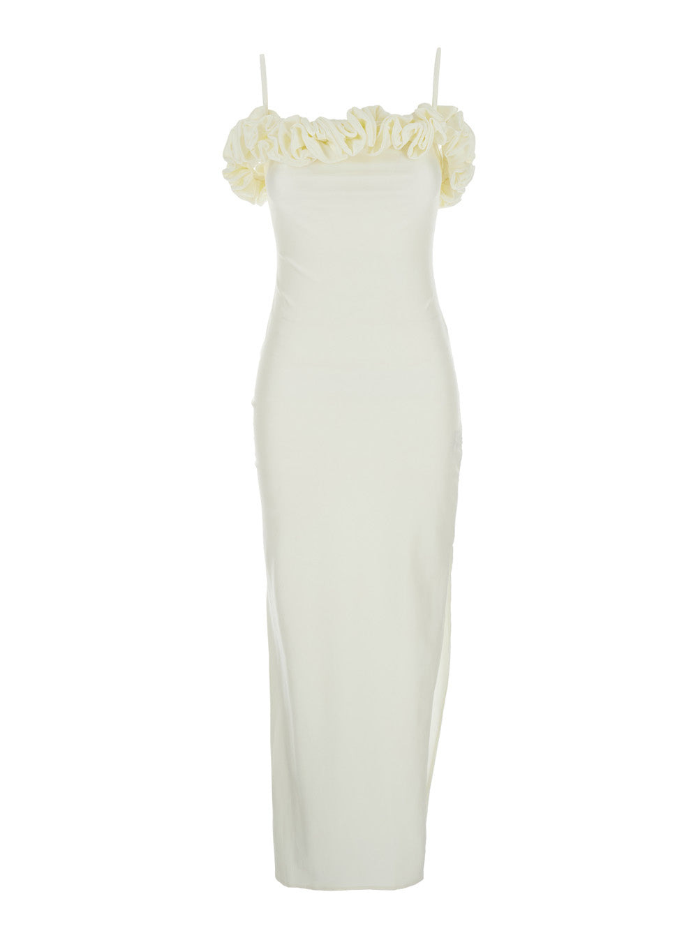 Long dress White Spaghetti straps Sleeveless Ruched detail Side slits Asymmetric hem Tech fabric stretch Fitted shape SKU: COPR113F5001WHITE Our Products Are 100% Genuine. In All Cases We Stand By The Authenticity Of Every Product Sold On Our Site. All sales are final and we only accept returns for quality issue. Buyer is responsible for any import tax/duty if applicable.