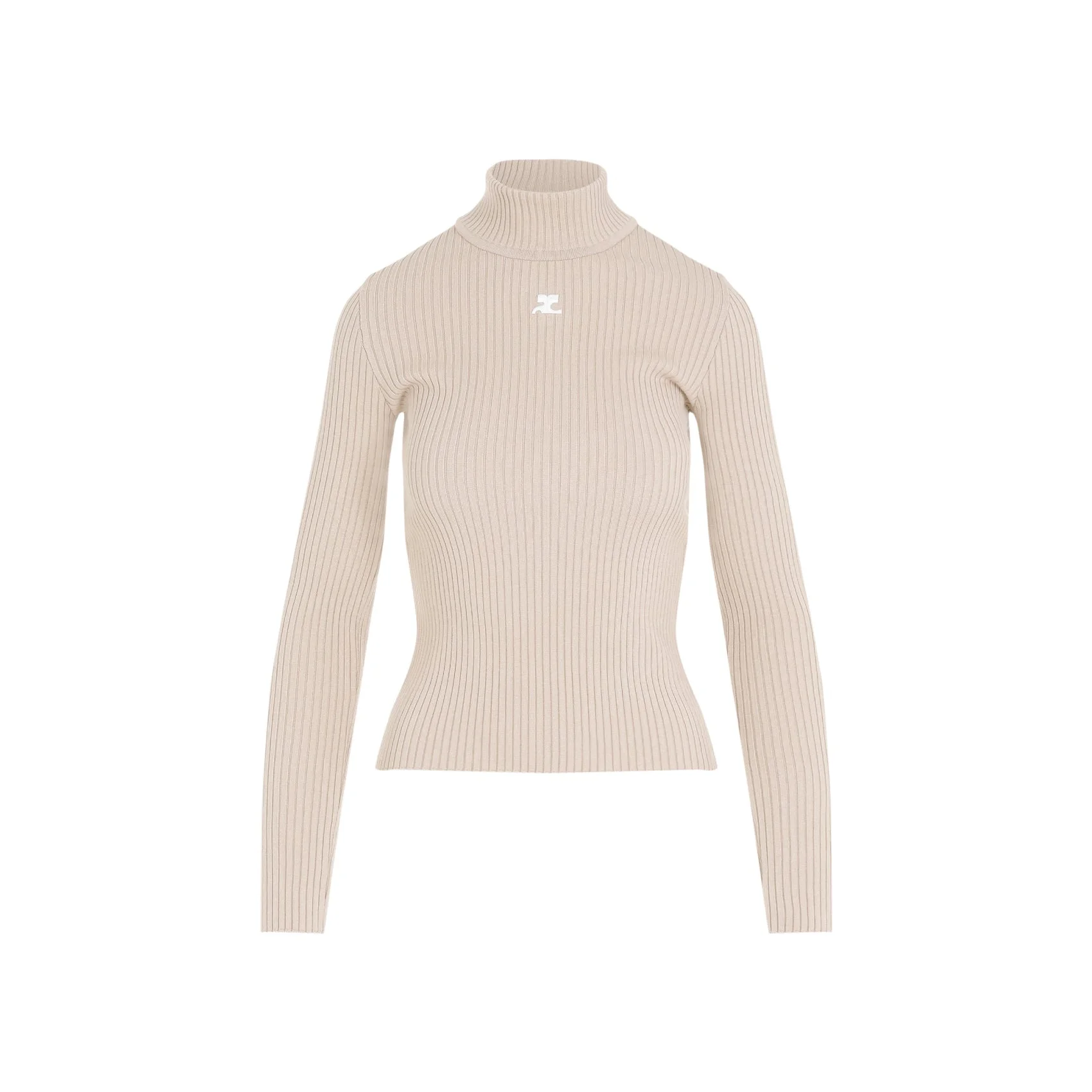 Courreges Cappuccino Roll Neck Ribbed Jumper. Cappuccino viscose blend, ribbed knit, roll neck, long sleeves, embroidered logo on front in white, straight hem. Viscose | 70%VISCOSE FSC 30%POLYESTER Size Type: INT SKU: PERMPU022FI0001Nude&Neutrals Our Products Are 100% Genuine. In All Cases We Stand By The Authenticity Of Every Product Sold On Our Site. All sales are final and we only accept returns for quality issue. Buyer is responsible for any import tax/duty if applicable.
