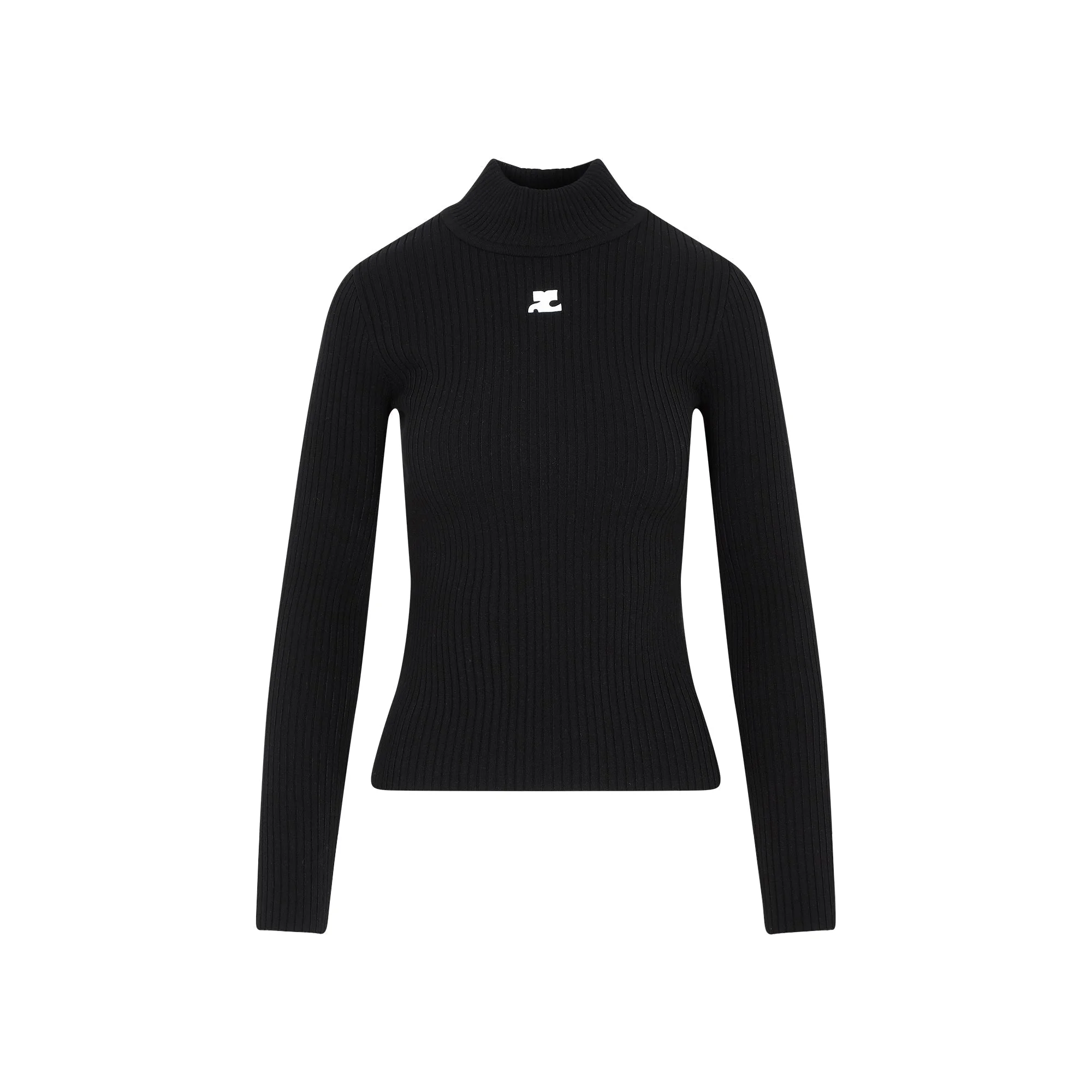 Courreges Black Roll Neck Ribbed Jumper. Black viscose blend, ribbed knit, roll neck, long sleeves, embroidered logo on front in white, straight hem. Viscose | 70%VISCOSE FSC 30%POLYESTER Size Type: INT SKU: PERMPU022FI0001Black Our Products Are 100% Genuine. In All Cases We Stand By The Authenticity Of Every Product Sold On Our Site. All sales are final and we only accept returns for quality issue. Buyer is responsible for any import tax/duty if applicable.