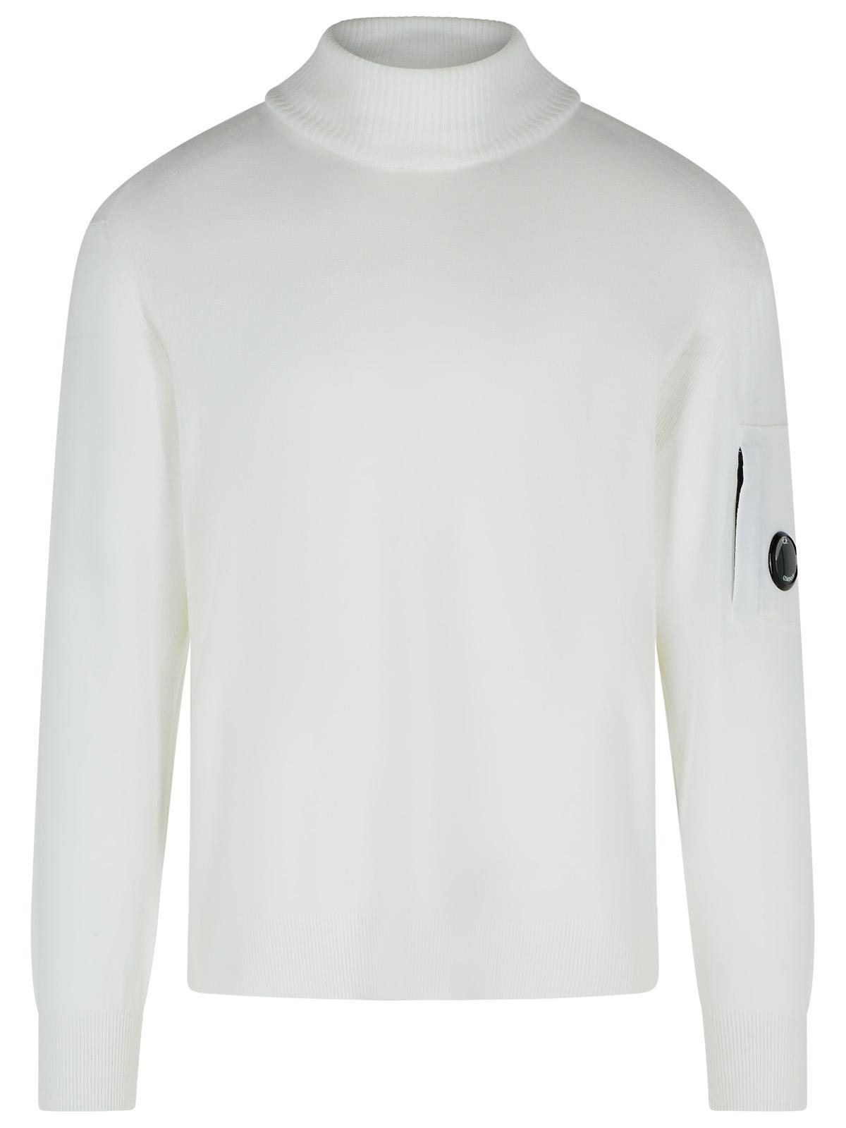 C.P. Company 'Lens' Turtleneck Sweater In White Virgin Wool Blend Men