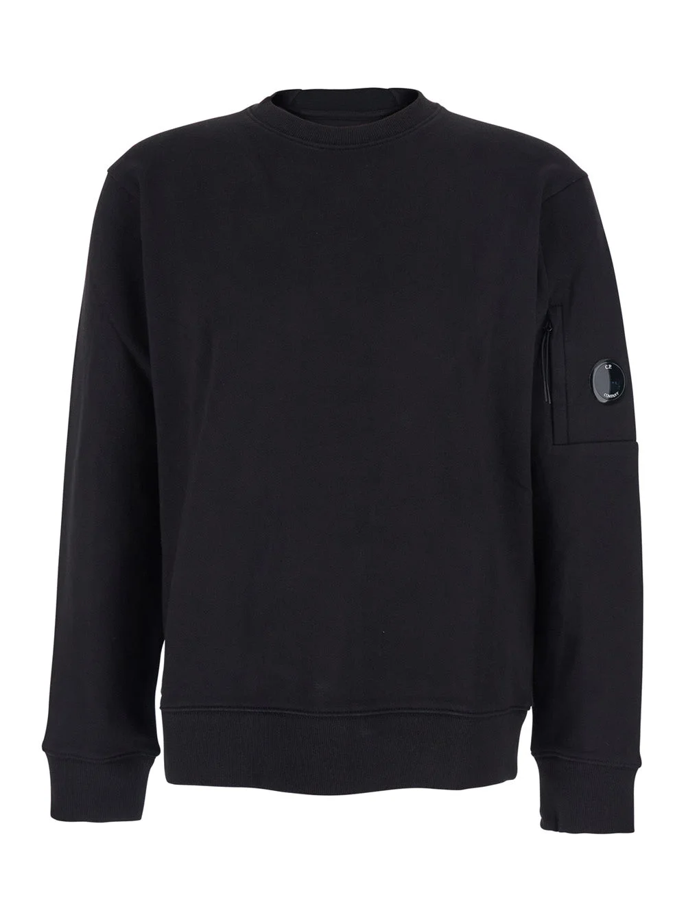 C.P. Company Men Black Crew Neck Sweater With Logo Patch Applied On The Sleeve In Cotton Man
