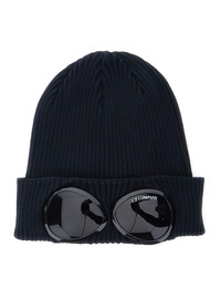 C.P. Company Men Blue Knit Beanie With Google Detail On The Front In Cotton Man