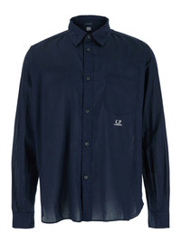 C.P. Company Men Blue Shirt With Classic Collar And Logo Lettering On The Front In Cotton Man