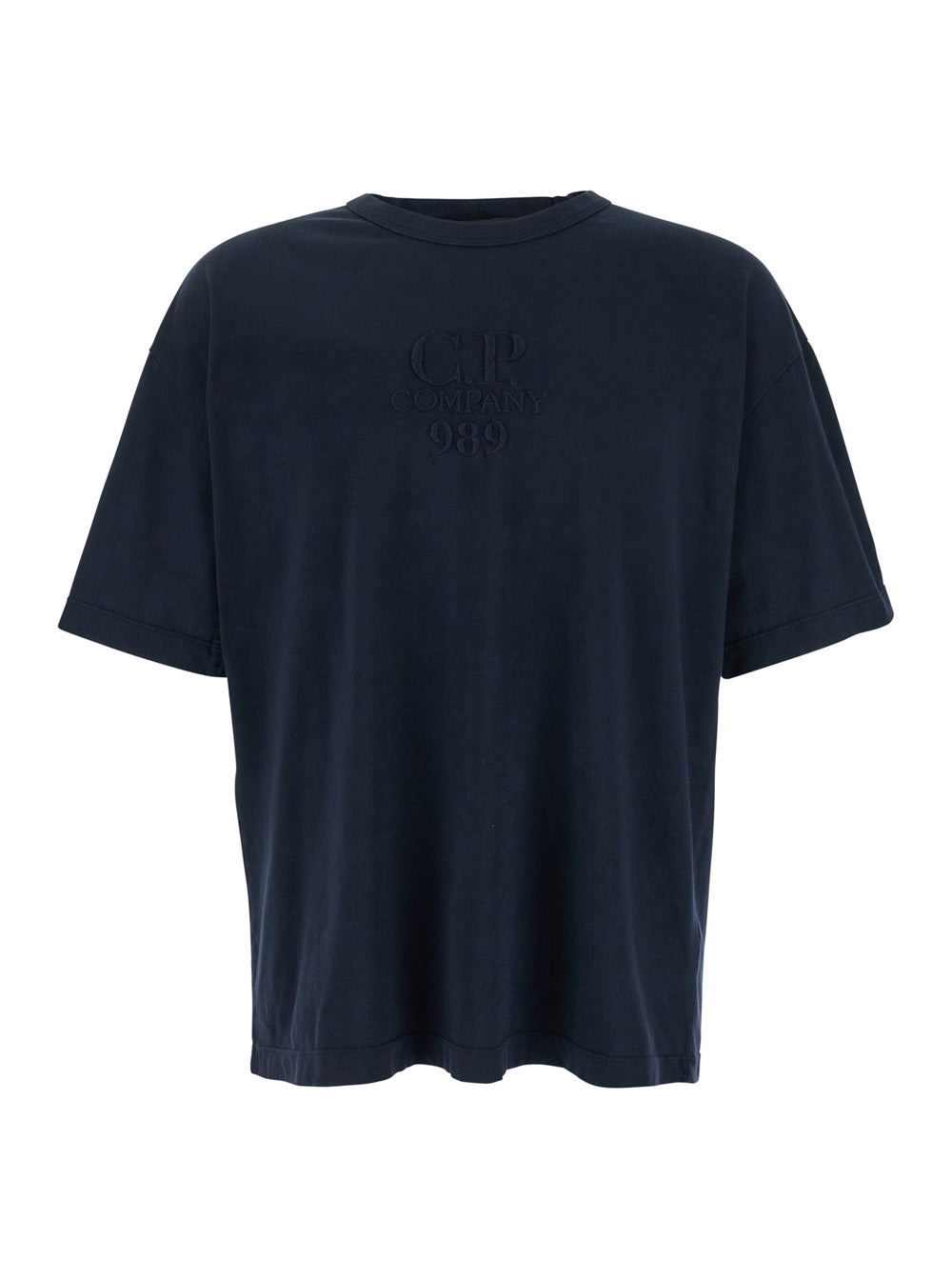 C.P. Company Men Blue T-Shirt With Logo Embroidered On The Front Tone-On-Tone In Cotton Man