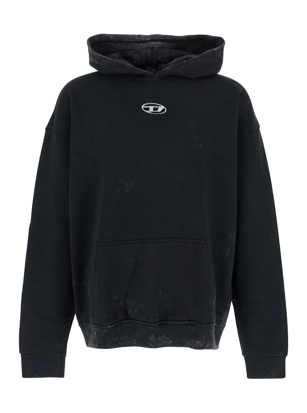Diesel Men Black Hoodie With Logo Patch On The Front And Faded Effect In Cotton Man