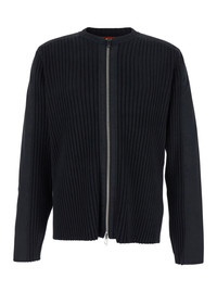 Diesel Men 'K-Matty' Black Crewneck Ribbed Knit Sweatshirt With Front Zip Closure In Cotton Man