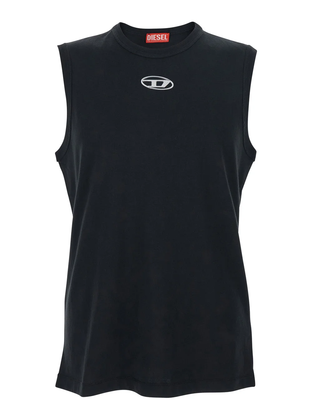 Diesel Men 'T-Bisco-Iod' Black Sleeveless Top With Logo Detail On The Front In Cotton Man