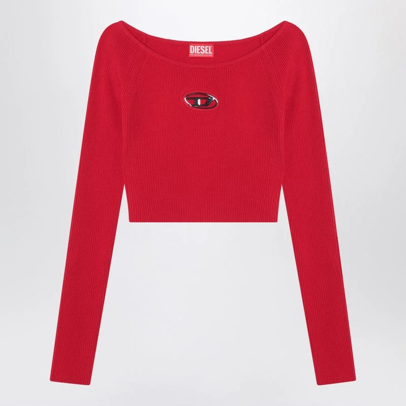 Top by Diesel in red viscose jersey featuring ribbed design boat neckline cropped length metal Oval D logo on the chest and fitted silhouette. Size Type: INT Material: Viscose SKU: A141890DLAX/QDIESE42A323 Our Products Are 100% Genuine. In All Cases We Stand By The Authenticity Of Every Product Sold On Our Site. All sales are final and we only accept returns for quality issue. Buyer is responsible for any import tax/duty if applicable.