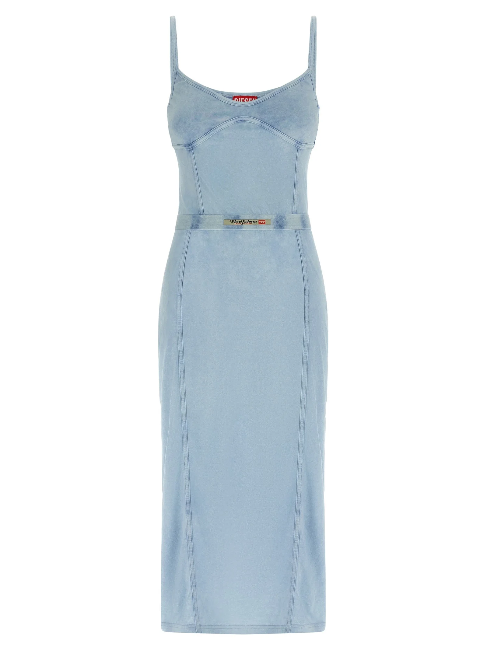 D-Ony' delave denim-effect stretch jersey midi dress with panel construction, sheath dress with elastic waistband and front logo patch, thin straps, wide sweetheart neckline, sleeveless. Slim fit 93% cotton, 7% elastane SKU: A183580KIBY01C Our Products Are 100% Genuine. In All Cases We Stand By The Authenticity Of Every Product Sold On Our Site. All sales are final and we only accept returns for quality issue. Buyer is responsible for any import tax/duty if applicable.