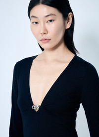 M-Placky long sleeve dress in wool knit. V neck Long sleeves Chest logo plaque Ribbed 100% Wool. Hand wash A17454 0JQAB 81E SKU: A174540JQAB81E Our Products Are 100% Genuine. In All Cases We Stand By The Authenticity Of Every Product Sold On Our Site. All sales are final and we only accept returns for quality issue. Buyer is responsible for any import tax/duty if applicable.