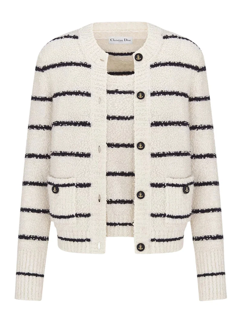 Christian Dior Women Twin-Set Marinière Knitted Cotton And Wool Bouclé Blend