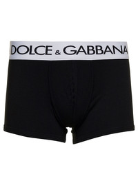 Dolce & Gabbana Men Black Boxer Briefs With Branded Waistband In Stretch Cotton Man