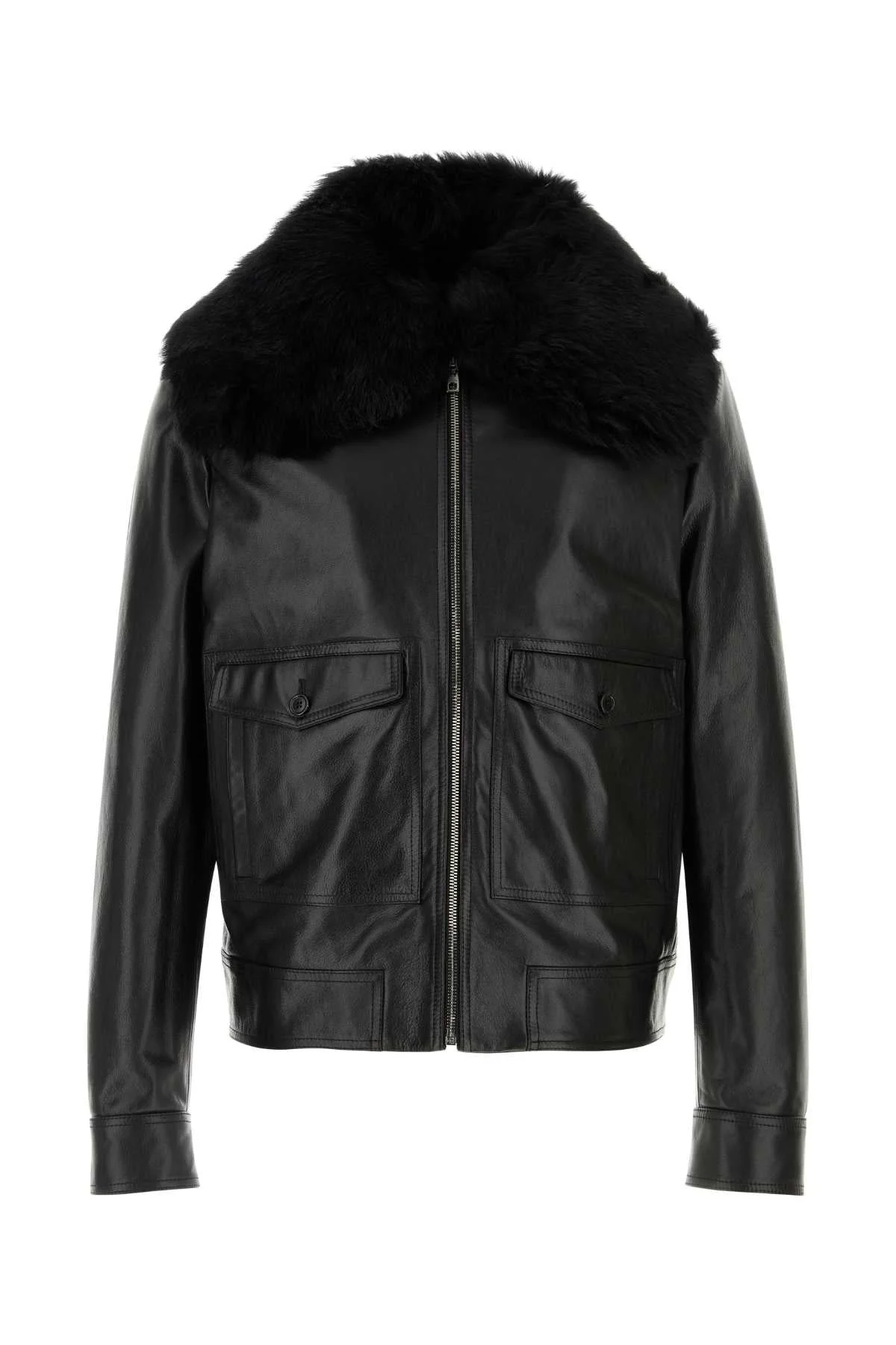 Dolce & Gabbana Men Black Leather Jacket