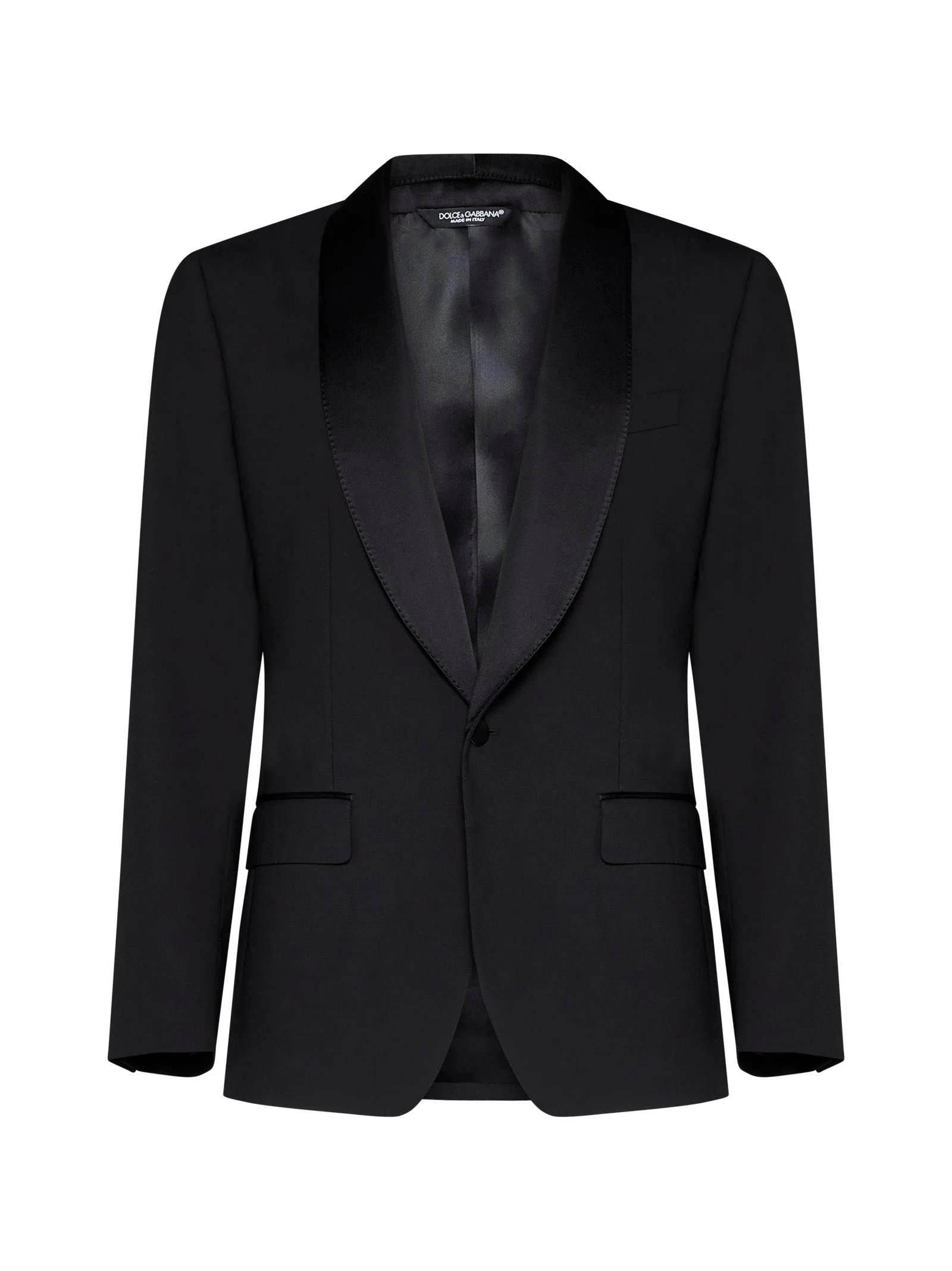 Dolce & Gabbana Men Black Stretch Wool Sicilia Tuxedo Blazer