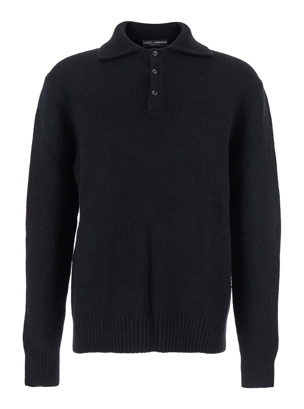 Dolce & Gabbana Men Black Sweater With Polo Collar And Back Logo Patch In Wool Man