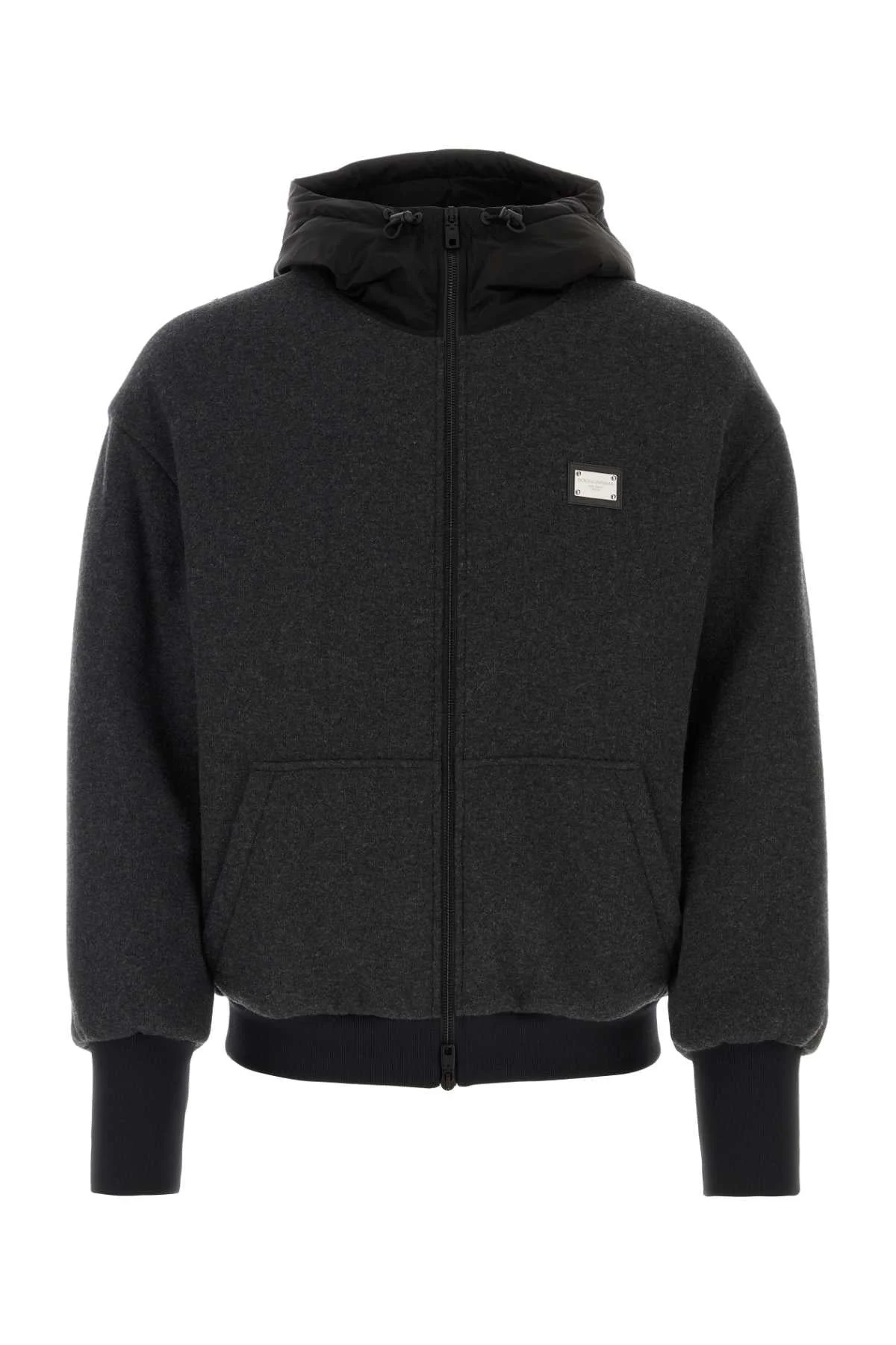 Wool jersey jacket with hood and logo