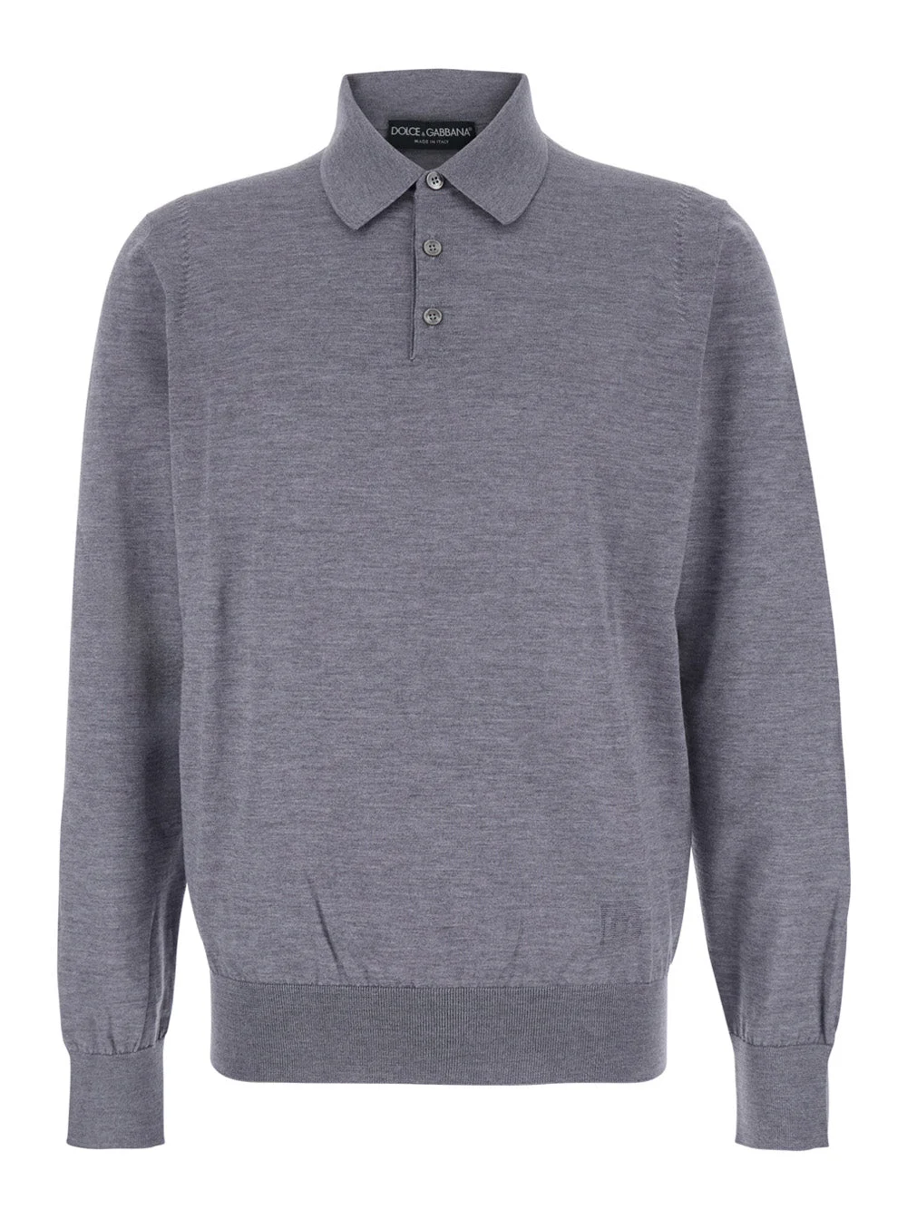 Dolce & Gabbana Men Grey Polo Shirt With Classic Collar And Tonal Logo Embroidery On The Front In Wo